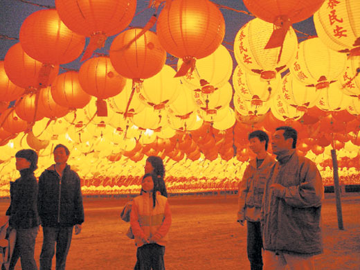 2008臺灣燈會和平祈福燈區(qū)可現(xiàn)場或透過網(wǎng)絡(luò)、手機點燈。(圖:臺灣《聯(lián)合報》)