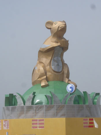2008臺灣燈會主燈“禮鼠獻瑞”20日試燈,21日元宵節(jié)點燈。(圖:臺灣《聯(lián)合報》)