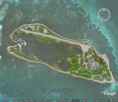 谷歌地球上面的東沙島衛星照片