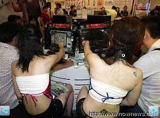 中新網(wǎng)8月1日電 一年一度的臺北計(jì)算機(jī)應(yīng)用展31日登場,游戲廠商拼買氣,大手筆請來眾多超級辣妹女子兵團(tuán)。其中,有游戲的Show Girl把刺青貼紙貼在白嫩嫩的大腿上、有肚兜妹妹一對一陪伴民眾打電動,美艷撩人的“伴玩”表現(xiàn),讓男性民眾大呼:“真害羞!”