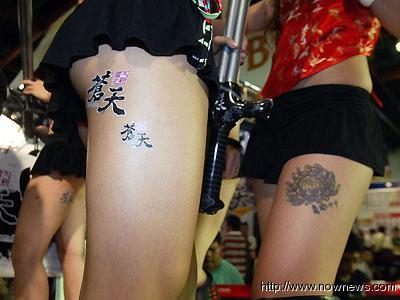 辣妹大腿刺青、貼上浮貼印,性感撩人。
