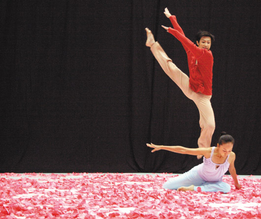 農歷大年初五一場大火,燒掉云門舞集的家,浴火后云門再度出發,昨天在數萬片花瓣圍繞下舞新作“花語”。藝術總監林懷民說,人生有不同風景,不見得都是美麗的,“花語”不只有漂亮的花瓣,還有不斷擾人的風扇聲,吹動著花瓣隨處飄飛,這風是人生的風,不知不覺吹白了頭。(臺灣《聯合報》圖)