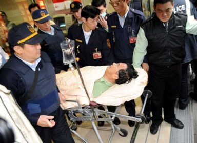 陳水扁禁食五天,16日晚間被戒護送往醫院治療,17日早上在警力戒護下轉院繼續治療。(“中央社”圖)