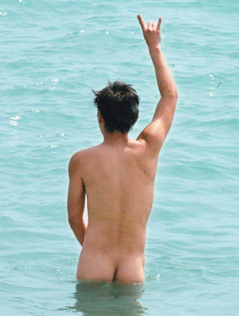 電影《海角七號》臺灣票房大破1億元(新臺幣,下同),范逸臣兌現裸泳承諾,在墾丁全裸入海,更全身涂滿助曬油增加肌膚黑亮質感,泡在海里時還不忘興奮大喊:“我終于用我自己獨特的方式,為《海角七號》的驚人票房慶功啦!”