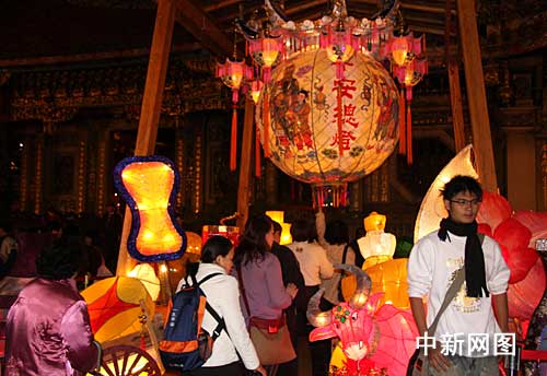 圖:臺北民眾摸平安燈上香祈求新年平安