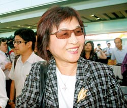 云林縣長蘇治芬搭乘兩岸包機抵達北京,第一次踏上大陸。(“中央社”圖)