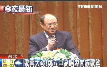 中新網4月19日電 據臺灣“中央社”報道,海峽兩岸關系協會常務副會長鄭立中18日歌興大發,在海峽交流基金會的晚宴上高唱卑南族(臺灣少數民族族群之一)歌謠“我們都是一家人”,還用閩南語祝愿“健康、平安、順利”,舉杯“乎干啦”。