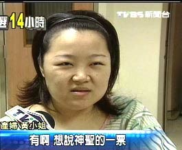 據(jù)臺(tái)灣TVBS報(bào)道,看著心肝寶貝女兒,這位年輕媽媽還驚魂未定,為了生孩子,差點(diǎn)以為不能投票。記者問:“有擔(dān)心說這樣是不是不能投票?”該女子說:“有啊,想說神圣的一票,因?yàn)檫@4年蠻亂的,經(jīng)濟(jì)什么…都不好!