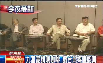 據臺灣TVBS報道,海峽對岸來的9位富豪,夜宿臺灣的最后一夜,排排坐在飯店里,臨時通知要請記者喝咖啡。