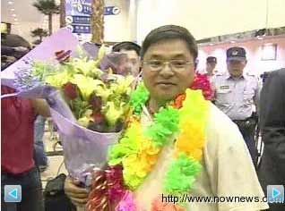 中新網5月21日電 據臺灣東森新聞報道,經歷了七天六夜的受困驚魂,臺灣祥鶴旅行團一行14人在20日晚間回到臺灣,其中把13名團員平安帶回臺灣的領隊陳健欽更是大家注目的焦點,陳健欽的母親親自到機場接機,綽號“小胖”的陳健欽,抱著媽媽哭了20秒,場面感人。