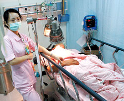 洪某受傷躺在醫(yī)院。(圖:臺灣《中國時報》)