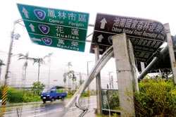 道路指示牌被風吹倒。(圖:臺灣《中國時報》)