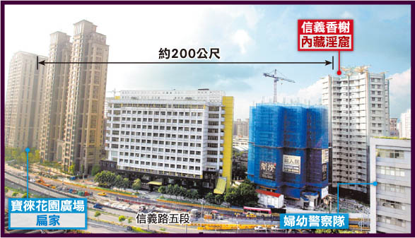 色情場所就在“信義香榭”豪宅內,僅距陳水扁住所“寶徠花園”200米