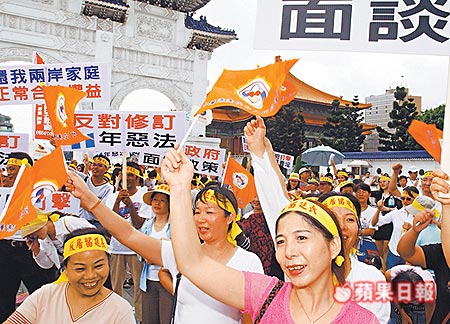 資料圖:2007年是兩岸通婚二十周年,有超過(guò)二十五萬(wàn)名大陸配偶在臺(tái)灣生活。但由于當(dāng)局的限制性政策,大陸配偶在島內(nèi)的權(quán)利難以得到保障。07年12月21日,“中華兩岸婚姻協(xié)調(diào)促進(jìn)會(huì)”在“移民署”門前集會(huì),申要人權(quán)與平等待遇。 中新社發(fā) 陳國(guó)華 攝