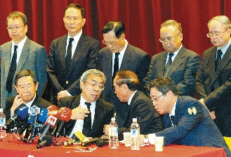 中新網10月17日電 臺塑集團創辦人王永慶遺體今天清晨6點30分返臺,臺塑集團“七人決策小組”也在集團總裁王文淵帶領下,上午9點20分舉行創辦人過世后的首次記者會。王文淵強調,臺塑集團現有的“七人小組”運作模式不受創辦人過世而有任何重大轉變,但會“因時間、空間改變,進行適時微調”。