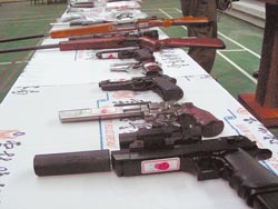 臺警方查獲透過網絡營銷具殺傷力的改造手槍,是目前黑幫分子的最愛。(圖:臺灣《中國時報》)
