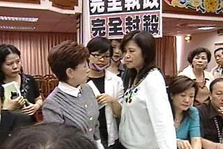 中新網(wǎng)10月30日電 民進(jìn)黨“立委”管碧玲22日在“立法院”里,狠狠的甩了國(guó)民黨“立委”洪秀柱一巴掌,隨后洪秀柱就提出了傷害跟公然侮辱的告訴,兩人29日再度碰頭,雖然沒(méi)了打鬧的吵雜場(chǎng)景,但是現(xiàn)場(chǎng)卻充滿相敬如“冰”的尷尬氣氛。