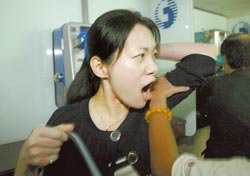 陳幸妤6日在進入法庭時大叫被媒體鏡頭打到。(圖:臺灣《中國時報》)
