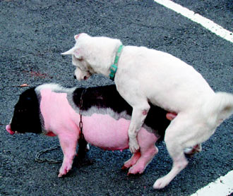 中新網11月14日電 據臺灣《聯合報》報道,一只麝香豬13日在嘉義縣樸子市,被叫一只土狗“性侵”,過程歷時十五分鐘。麝香豬的女主人氣壞了,原堅持要為寵物討公道,控告土狗主人縱容土狗性侵,得知老板正巧向對方承租土地,加上狗的主人頻頻道歉,才決定算了。