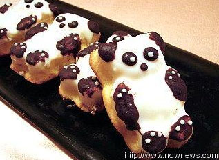 業(yè)者說從九月起就開始研發(fā)這一款“熊貓蛋糕”,以因應(yīng)即將來臨的“熊貓熱”。業(yè)者說,可愛的熊貓?jiān)煨停诟椎牟糠侄际怯萌鹗縼淼那煽肆Γ云饋硖饏s不膩,加上上面所黏的椰絲,越咀嚼越香,非常好吃。而且里頭還加了來自瑞士的糖漬柑橘丁,配上一些新鮮柳橙皮,增加果香。讓熊貓蛋糕咬下去口感豐富,一口接一口,細(xì)細(xì)咀嚼中還可以感受椰絲香氣。