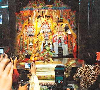 中新網2月5日電 據臺灣《聯合報》報道,嘉義新港媽拜訪云林北港媽的會香活動,4日達到最高潮,兩尊媽祖正式和解,現場人聲鼎沸,附近街巷擠得水泄不通,見證六十年首見的“媽祖和談”。