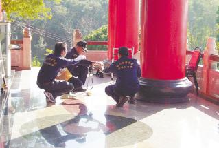 警方獲報(bào)后,立即在達(dá)摩卦山少林寺附近的山區(qū)進(jìn)行大搜索,警方表示,歹徒手持的可能是改造手槍?zhuān)壳罢凡榇跬缴矸忠约跋侣洹?/p>