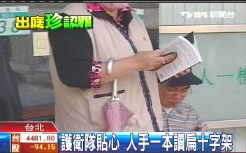 中新網2月12日電 臺灣TVBS12日報道說,做陳幸妤以及扁家的護衛隊真的“太窩心”,除了阻隔記者的問話,還得研讀起阿扁著作“臺灣的十字架”。