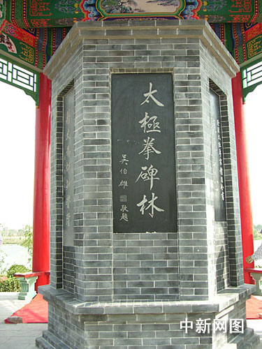 據(jù)介紹,整個太極文化碑廊東西長一百一十五米,鑲嵌一百四十多塊碑刻。碑廊東要兩端及中間各建一碑亭,吳伯雄先生題寫的“太極拳碑林”及劉炳南先生題寫的“太極文化化碑苑”分別放置在中間碑亭的正南、正北位置。