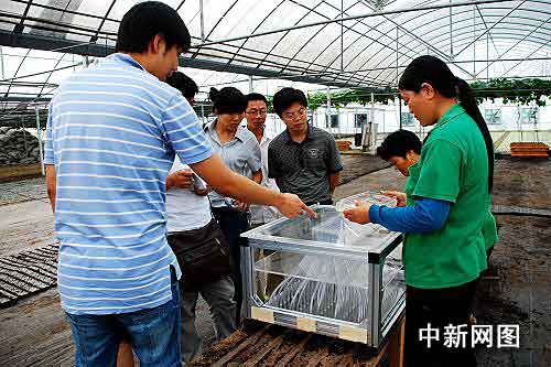 除了經營種類多種多樣吸引人氣之外,農莊對產品精益求精的態度也是讓人難忘的一個亮點。在梨島,遠遠望去看不到梨,只看到茂盛的枝葉下掛著一只只小袋子,工作人員介紹果實套袋可以防蟲,無農藥污染。在蔬菜園,每片剛剛萌芽的小菜秧旁邊,標記著“6月25日播種,白菜”字樣,科學按照時間照料蔬菜。