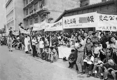 當(dāng)日,治喪委員會(huì)的大員們還想出了“路祭”這個(gè)名堂,沿路分配各機(jī)構(gòu)行號(hào)另設(shè)供桌,同時(shí)規(guī)定靈車經(jīng)過(guò)時(shí)不許迎靈的人們抬頭正視。此外還要求民眾在大典鳴炮之時(shí),在原地悼念3分鐘。