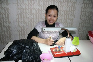 莫愛(ài)芳現(xiàn)在已懷胎八個(gè)月,前天領(lǐng)完獎(jiǎng),昨天照樣上菜市場(chǎng)買菜,一回家就做家庭代工,臥室里堆滿布偶,“我喜歡動(dòng)物,老公買給我的。”