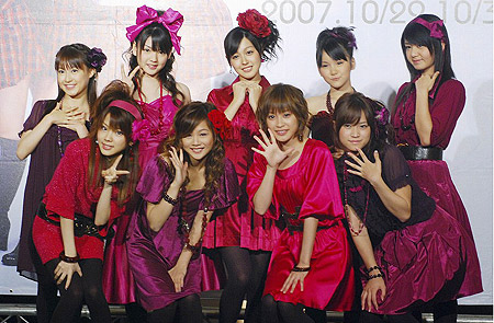 中新網(wǎng)10月31日電 據(jù)臺(tái)灣《中國(guó)時(shí)報(bào)》報(bào)道,日本偶像團(tuán)體“早安少女組”為宣傳成軍十年精選集,二十九日抵達(dá)臺(tái)灣展開造勢(shì)活動(dòng)。圖為早安少女組三十日于記者會(huì)上正式亮相。