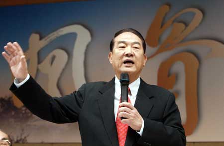 宋楚瑜二月二十五日出席前高雄縣長林淵源“風骨─林淵源八十談往”新書發表會,批評藍綠兩位“大選”候選人辯論會都未真正面對問題。(“中央社”圖;孫仲達攝)