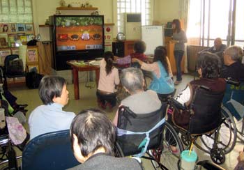 中新網2月18日電 據“中央社”報道,青少年喜歡玩游戲機,現在就連老人家也熱衷玩游戲。圖為臺中市華穗養護之家的阿公及阿嬤爭相玩起“樂活健康器”,不僅可解悶,還有復健效果,增加手腳靈活度。