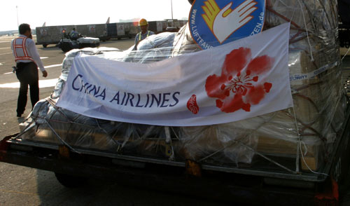德國民間救援組織“航空無國界協會”捐贈1噸的毛毯、睡袋及帳蓬等人道救援物資,也于今天清晨6時40分運抵桃園機場。另外,加拿大政府將捐贈5萬加幣,并捐助20萬枚氯錠,供災區重建。