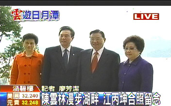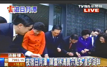 陳云林今天清晨6點多,先是邀約江丙坤共進早餐,后來又漫步在日月潭湖畔,欣賞美麗的風光。