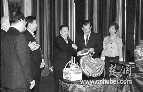 連戰說,在這春暖花開的美好時節,迎來了羅清泉書記率領的湖北省代表團,感到十分親切和高興。湖北是一個文化大省、農業大省和經濟快速發展的大省,各個方面都有很多令人向往的地方。他曾前后兩次到湖北,感到湖北發展很快,變化很大,特別是在民生等方面取得了很大的成績。他說,連家祖輩從山西到河南,從河南再到湖北,有九代生活在隨州。談到湖北,他總有一種很自然的親切之感。這次湖北代表團的到來,對于加強臺灣和湖北兩地的交流非常有意義。他希望兩地之間的合作更深入、更廣泛,以造福兩地百姓。