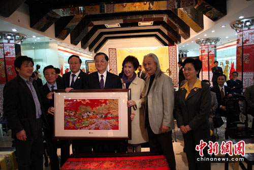 中新網南京4月28日電(申冉)今天下午,來寧出席“2010海峽兩岸企業家紫金山峰會”的中國國民黨榮譽主席連戰攜夫人參觀了南京云錦制造所在地——南京云錦研究所,南京市委書記朱善璐全程陪同參觀。
