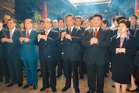福建省經貿文化交流團、莆田市莆臺交流協會團及中華媽祖文化交流協會團等,約一百一十多位成員,受到臺“立法院長”王金平、臺中縣副縣長陳茂淵、議長張清堂,及鎮瀾宮董事長顏清標等人的熱烈歡迎。