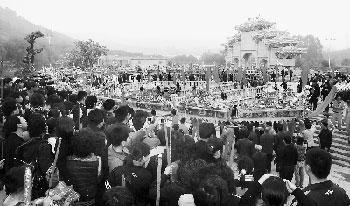 在東嶼村,大家都把蜈蚣閣當(dāng)成是村里的驕傲,還成立了蜈蚣閣表演理事會(huì),專門(mén)負(fù)責(zé)蜈蚣閣表演的推廣活動(dòng)。這些歸功于一位名叫鄭呂嘴的古稀老人。老鄭說(shuō),從小就喜歡蜈蚣閣的表演,如今掌握蜈蚣閣制作工藝的老藝人越來(lái)越少,而年輕人又不感興趣,一直擔(dān)心這門(mén)傳統(tǒng)技藝會(huì)后繼無(wú)人。為此,他一方面四處奔走,呼吁有關(guān)部門(mén)重視對(duì)蜈蚣閣技藝的保護(hù),另一方面,他還把村里有蜈蚣閣制作技藝的人都召集起來(lái),一起成立了蜈蚣閣表演理事會(huì)。
