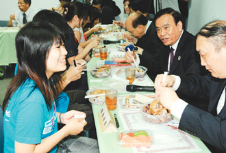 中新網(wǎng)6月11日電 據(jù)臺灣《聯(lián)合報》報道,浙江省長呂祖善昨天到臺大校園參訪,并與臺大學(xué)生共進(jìn)午餐,他主動邀請一百五十名臺大學(xué)生到浙江游學(xué),希望兩岸學(xué)生的交流能更緊密。