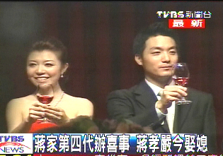 事實上,小兩口已經在美國登記結婚,不過臺灣禮俗不可免,蔣孝嚴夫婦一大早就前往宜蘭迎娶新娘,兒子才是主角,當老爸的不敢太高調。而邀請誰來參加婚宴呢?蔣孝嚴傷透腦筋。