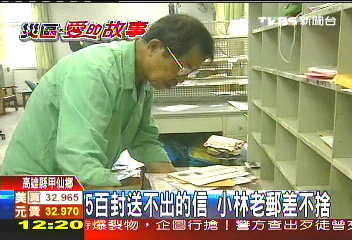 中新網8月19日電 高雄縣甲仙鄉小林村一夕之間滅村,甲仙郵局有一位專跑小林村的老郵差劉昭學,他送信到小林村已經有30多年,但臺風到現在,累積成堆的小林村郵件,已經2大箱,大約500多封信如今成了無法投遞的郵件,老郵差滿是遺憾和不舍。