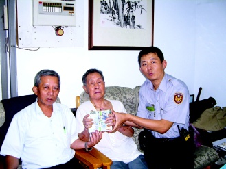 八十二歲古雨甘(中)退休前是蔣經(jīng)國官邸的管家,接獲詐騙電話,差點被騙。圖片來源:臺灣《聯(lián)合報》