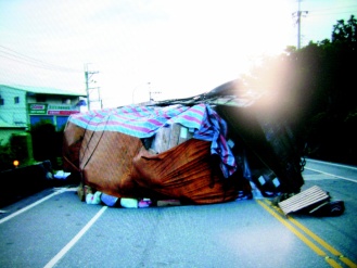 中新網8月24日電 據臺灣《聯合報》報道,一輛載滿賑災物資準備送到臺東縣太麻里的大貨車,二十三日清晨行經花蓮縣富里鄉臺九省道時翻覆,貨車司機余正輝當場死亡,隨車助理林清華輕傷。警方抽血檢測,懷疑余正輝酒后駕車,車速過快才發生意外。