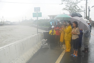大水淹進了丸山路住家,縣長呂國華和鄉長張秋明挨家挨戶敲門勸住戶撤離。軍方出動一百五十多名人力,協助堆砂包,清淤塞。