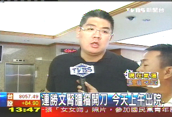 連勝文住院開刀的消息,是在臺北榮總中正樓三樓手術等候室曝光,當時該等候室的“病患手術動態屏幕”,跑馬燈秀出連勝文的名字,有病家看到北榮高層向連戰夫婦說明病情。