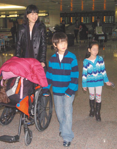 中新網1月21日電 據臺灣《聯合報》報道,國民黨秘書長金溥聰的妻子周慧婷與一雙兒女結束5個月的華盛頓之旅,20日清晨返抵臺灣。由于周慧婷之前才摔傷,一路上還得照料2個也都受傷的孩子,一到桃園機場,周慧婷帶著孩子上車走了,讓趕來接機的金溥聰撲了空。這對糊涂夫妻還得靠記者幫忙傳話,連周慧婷也笑說:“我不知道他要來接,他可能是想給我驚喜。”