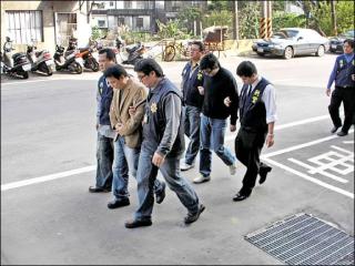 警方昨天兵分八路,分別在桃園、龍?zhí)丁⒋笙?zhèn)拘提主嫌、集團成員到案,查扣本票、微量毒品、棍棒等證物,但并未起出槍械。