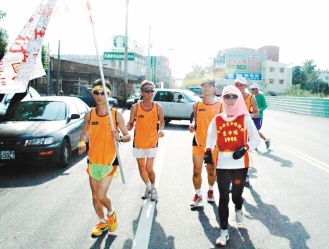 昨天虎尾飛馬慢跑協會理事長許大松帶領會員“陪跑”,一路高喊“珍愛生命”抵達虎尾分局落腳,許大松表示,已經50歲的黃衍齡能夠完成“不可能的任務”,靠堅強的毅力及對生命熱愛,令人敬佩。